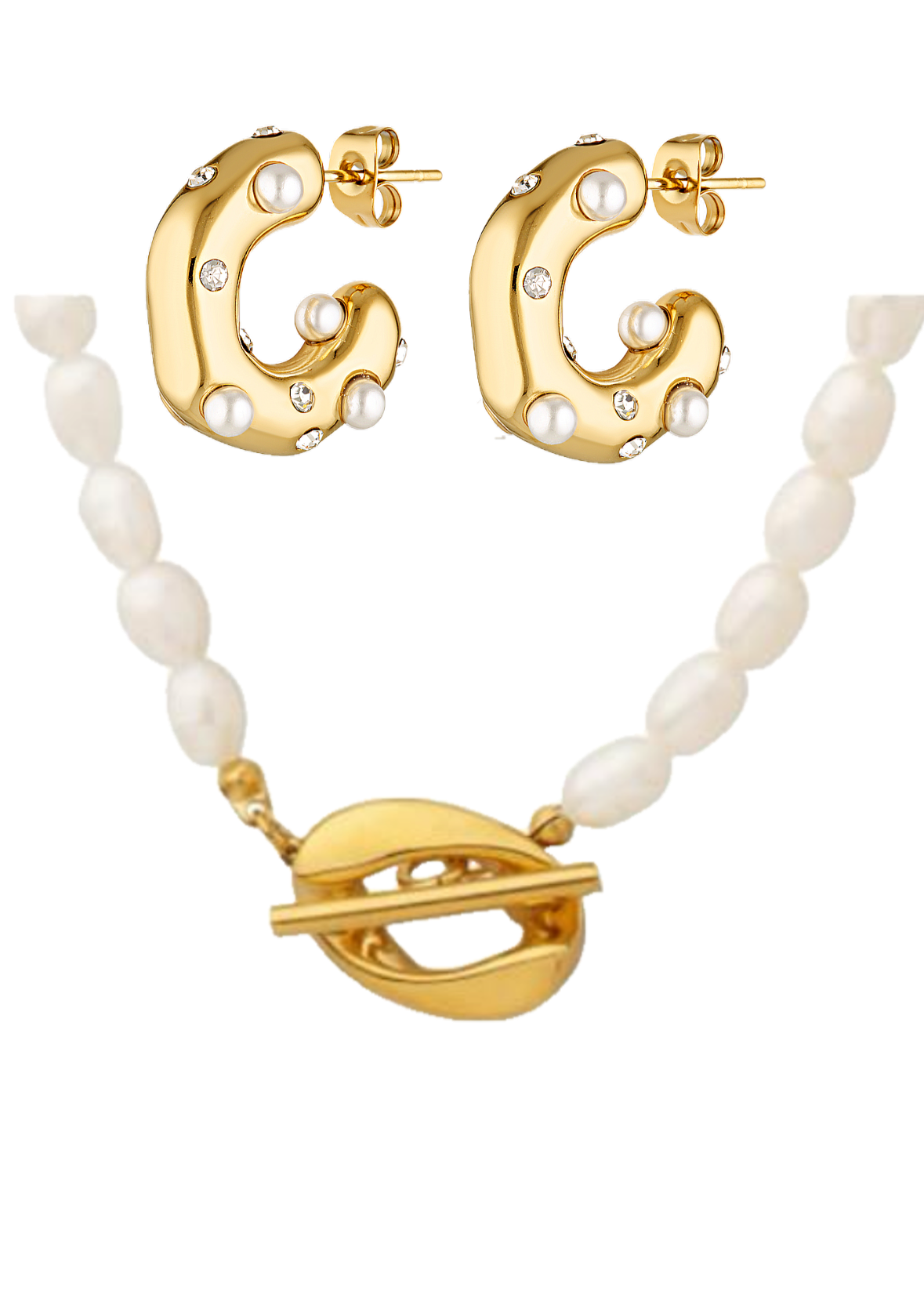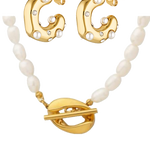 Pearl and gold earring and necklace set